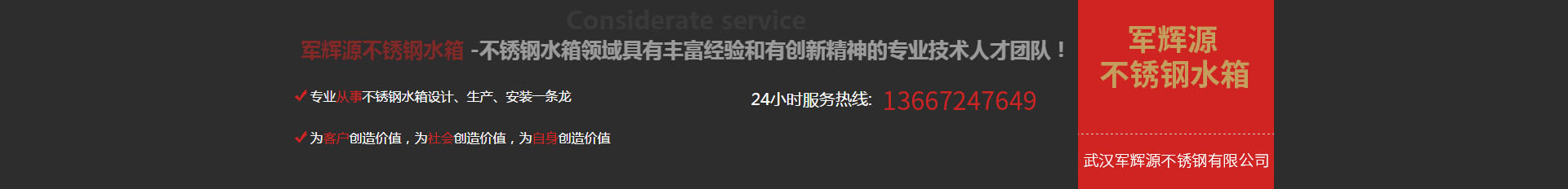 武漢軍輝源不銹鋼有限公司是華中地區(qū)專(zhuān)業(yè)生產(chǎn)不銹鋼水箱的環(huán)保企業(yè),公司集不銹鋼水箱開(kāi)發(fā)設(shè)計(jì)、生產(chǎn)、銷(xiāo)售、維修、售后服務(wù)為一體。